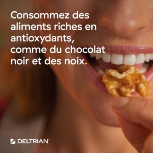 → Consommez des aliments riches en antioxydants, comme du chocolat noir et des noix.