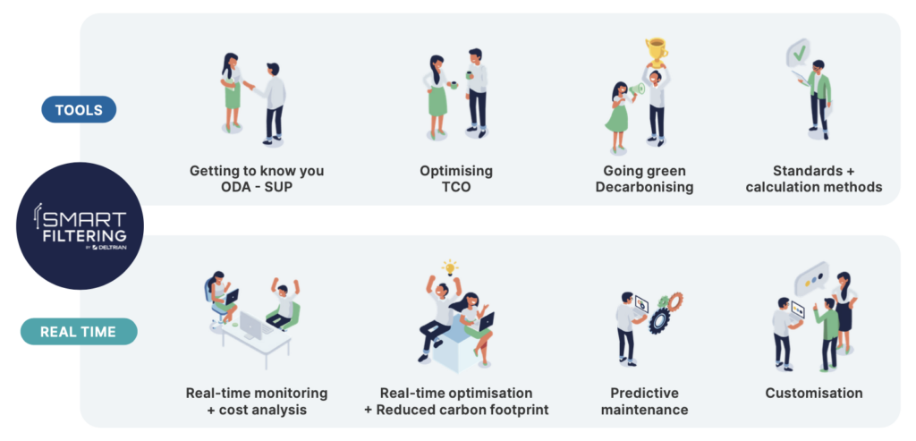 In today's environmentally conscious world, effective air quality management has become essential. With over 55 years' experience, our company has always been at the forefront of innovative solutions to improve air quality. Smart Filtering is our predictive maintenance solution for air handling units, addressing the challenges of carbon footprint and CO₂ emissions.